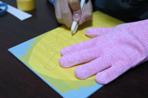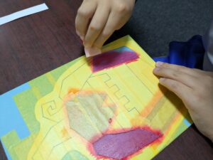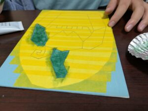 ただ絵をかいて色を塗るのもなんだか味気ないということで、