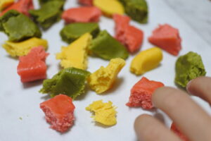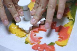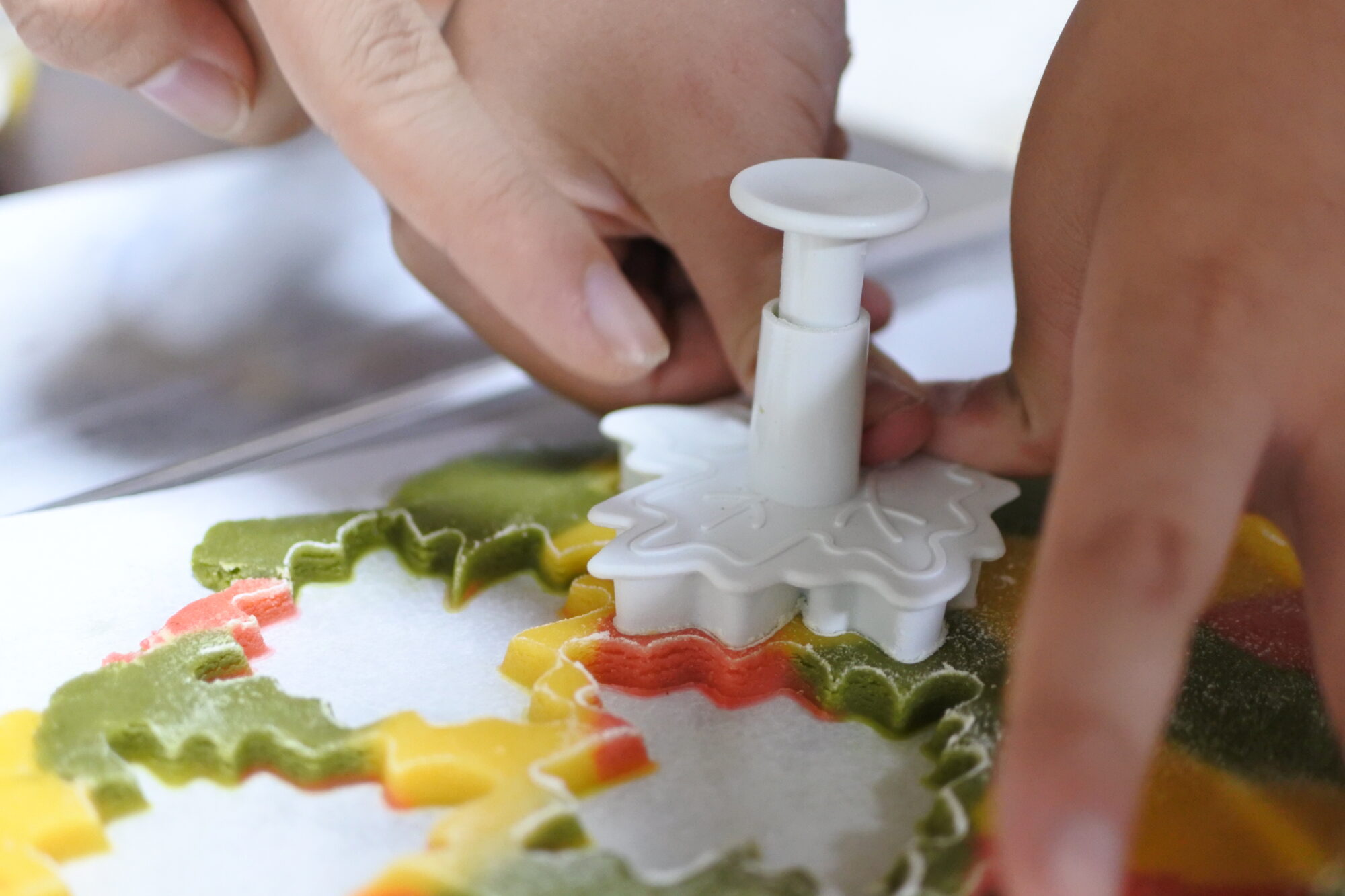 カラフルなクッキー生地をみんなで配色して、丁寧にのばして型を抜く!!
