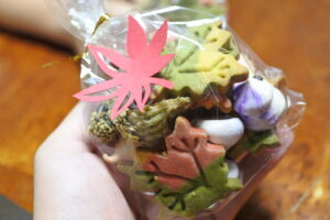 ラッピングも秋らしく切り抜き紅葉を添えて