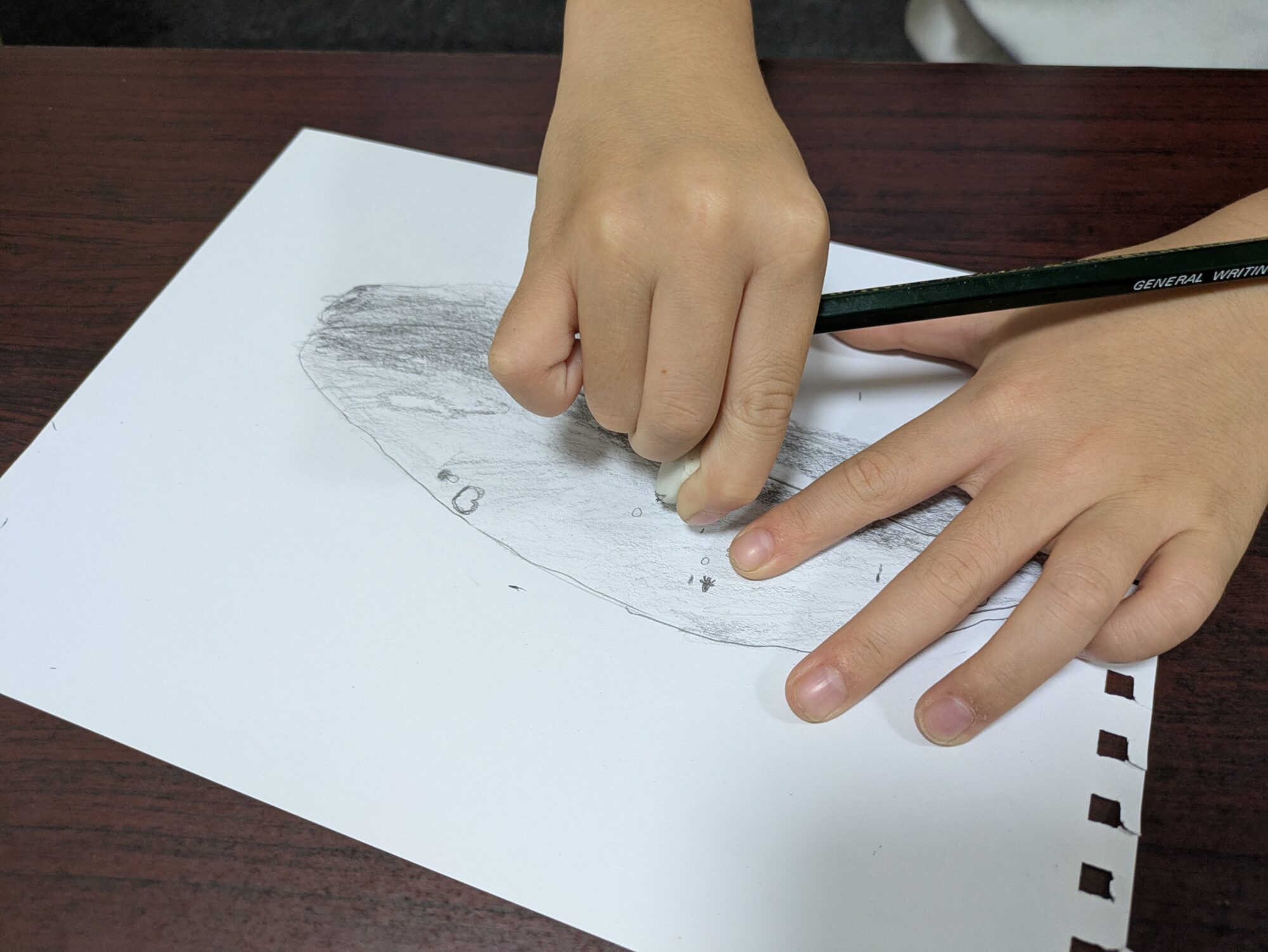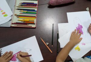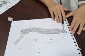 高学年は鉛筆での明暗や陰影の練習をしたり、低学年は色鉛筆の使い方などを学びました(*’▽’)